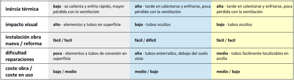 Consulte los principales aspectos entre los calefactores de convección y las superficies radiantes: